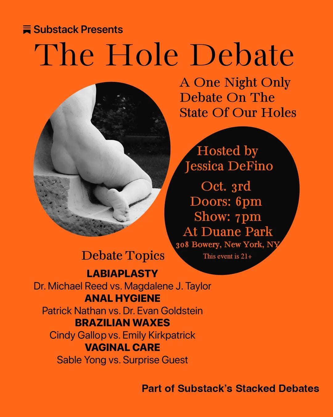 I don’t have much of an intro to deliver this week — I have actually been doing a lot of writing, and my head feels a little empty on the pleasantries I usually like to deliver. I’ve also been doing more in-person events, something I hope to continue! If you’re reading this on Friday, September 27th, I will also be doing a reading tonight in Williamsburg with a real stacked list of names. Partiful here and Eventbrite here.